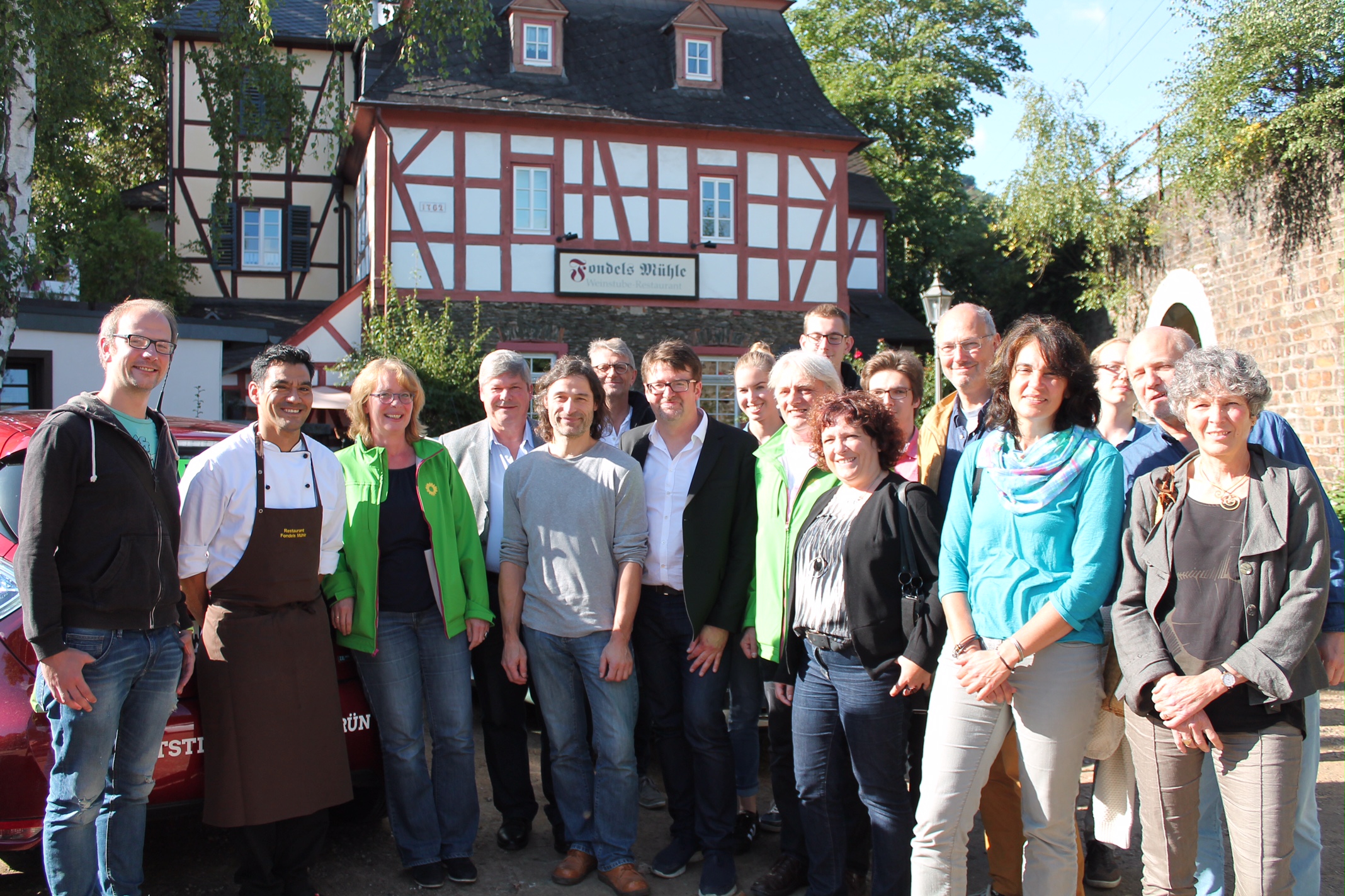 Gleich mehrere Superlative gab es heute (10.09.2017) beim grünen Lärmcafe in Boppard zu bestaunen: sechs E-Autos und ein gasbetriebenes Auto füllten umweltfreundlich den Platz vor der Fondels Mühle. Drinnen gaben sich die Grünen-Direktkandidaten für die Bundestagswahl ein Stelldichein: Ralf Kauer (Kirchberg), Martin Schmitt (Monreal), Patrick Zwiernik (Koblenz) und die grüne Spitzenkandidatin Tabea Rößner. Ebenfalls dabei waren die Grünen-Kreissprecherin Daniela Lukas von Nievenheim, die Koblenzer Grüne Stadträtin Laura Martin Martorell, Leo Neydek (Grüne Rhein-Lahn) und Jutta Wein, Sprecherin des angrenzenden Grünen Ortsverbandes Untermosel. Eingeladen hatte Andreas Roll, Grüner Stadtrat in Boppard. Zahlreiche Mitglieder des Stadtverbandes und der Grünen Jugend sowie weitere interessierte Besucher füllten die Fondels Mühle. Sachkundige Experten – Willi Pusch von der Bürgerinitiative gegen Bahnlärm und Umweltgefahren sowie Rupert Röder vom Verkehrsclub Deutschland (VCD e.V.) – lieferten wichtige Detailinformationen für die angeregte Themendiskussion. Neben Bahnlärm wurden auch Schiffslärm, Freizeitlärm, Klimawandel und Fluglärm in knapp zwei Stunden angeschnitten. Zahlreiche Lösungsvorschläge für die Arbeit im Stadtrat vor Ort aber auch konkrete Vorschläge und Forderungen an die Bundespolitik wurden formuliert und Tabea Rößner mit auf den Weg nach Berlin gegeben.