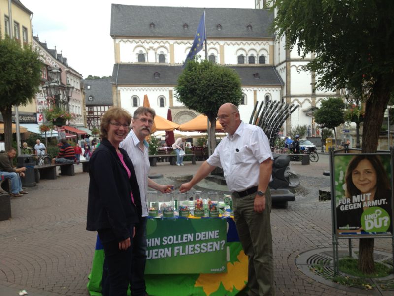 In der Füßgängerzone konnte Tabea Rößner mit Unterstützung der bopparder Grünen Klaus Brager, Christian Reppert und Kreissprecher Thomas Görgen das grüne Neunpunkte-Programm zur Bundestagswahl vorstellen.